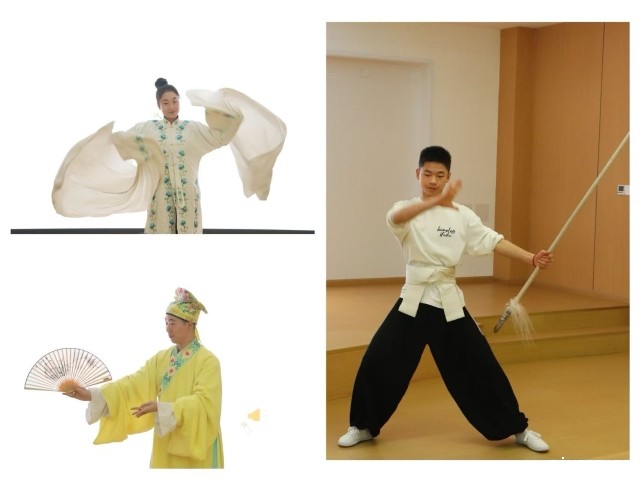 随后,川剧系学生轮番登场:水袖表演者以飘逸长袖勾勒出如行云流水般的韵律;褶子褶扇组合通过翻飞衣袂与开合折扇,展现文戏的儒雅风姿;花枪表演则以铿锵有力的武打动作,将现场气氛推向高潮。台下师生跃跃欲试,在川剧系学生指导下,中外学子分组体验水袖甩动、褶子开合、花枪对招等技艺。互动环节后,川剧系学生以着变脸服饰飒爽登场,演员在瞬息间变换十余张脸谱,引发现场掌声不断,为活动画上震撼句点。