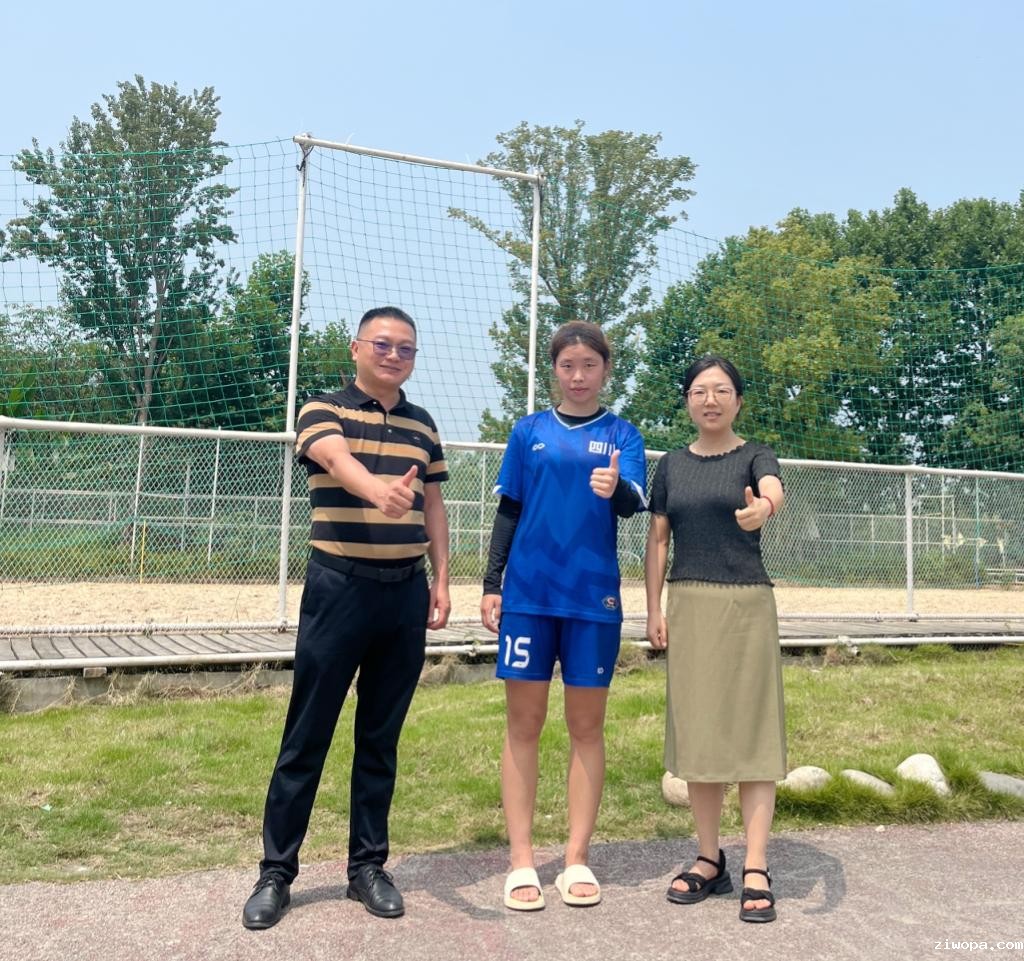 7月17日,学院副院长聂文俊、国际旅游与体育学院院长李娟、女足校队教练王未带着全院师生的深切关心与美好祝福,专程前往温江足球训练基地四川沙滩女子足球队训练营,慰问正在紧张备战第15届全运会的我院女足队员陈坤慧。
